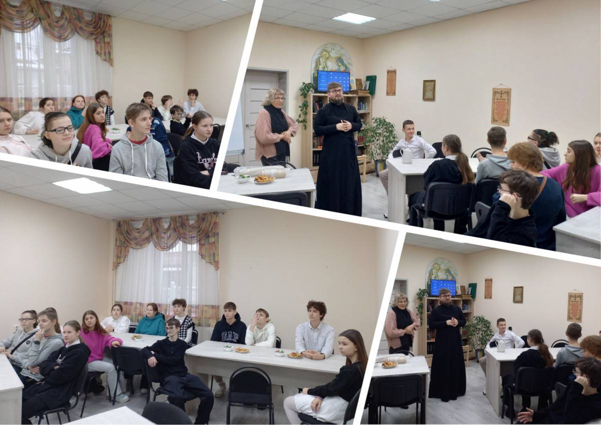 Игра была проведена в интерактивной форме по образу “Своей игры”, где команды выбирали задание, отвечали на вопросы и зарабатывали очки. Мероприятие проводил настоятель храма иерей Н.Баскаков.