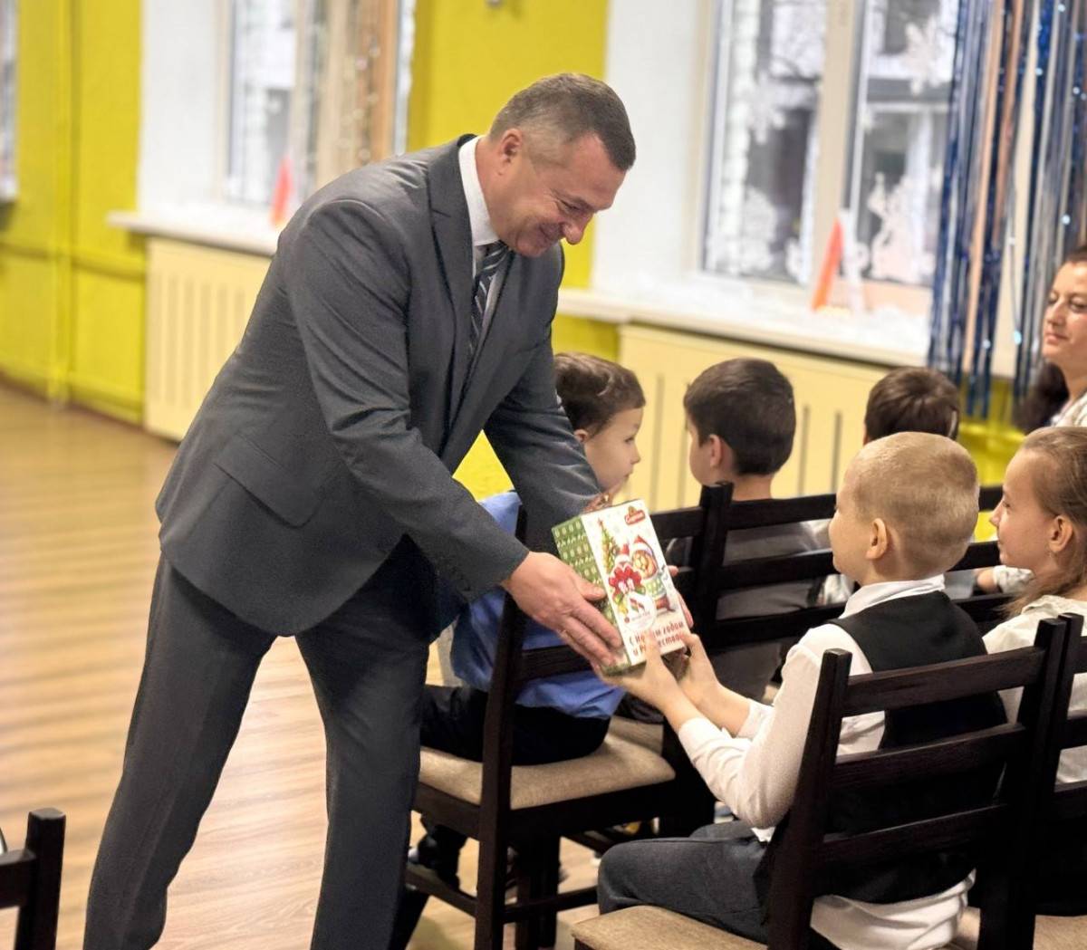 Александр Григорьевич поздравил ребят с наступающими праздниками и вручил подарки от Могилевской областной организации 🇧🇾РОО «Белая Русь».