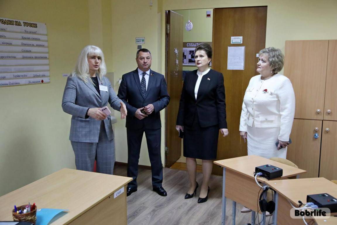 Во время ознакомительной экскурсии по учреждению образования Александр Горошкин, член Постоянной комиссии Совета Республики Национального собрания Республики Беларусь по международным делам и национальной безопасности, председатель Могилевского областного Совета депутатов, председатель Могилевской областной организации РОО «Белая Русь», и Ирина Рынейская, председатель Бобруйского горсовета депутатов, пообщались с педагогами, которые вкладывают душу в свою работу.